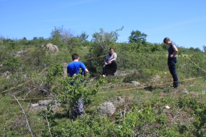 Minulý týden se část naší pracovní skupiny spolu a naším externím spolupracovníkem, Lubošem Tichým, vrátila k našim trvalým plochám pro sledování vlivu pastvy divokých koní na dvou lokalitách v Podyjí - na Mašovické střelnici a Havranickém vřesovišti. Plochy byly založeny v minulém roce a letos zde bylo již podruhé provedeno vegetační snímkování.